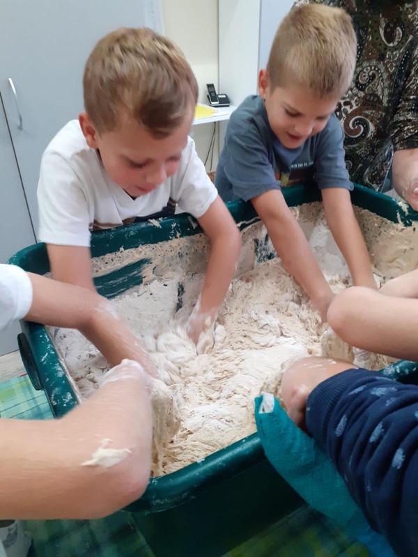 geknetet und jedes Kind durfte anschließend sein eigenes Brot formen und am